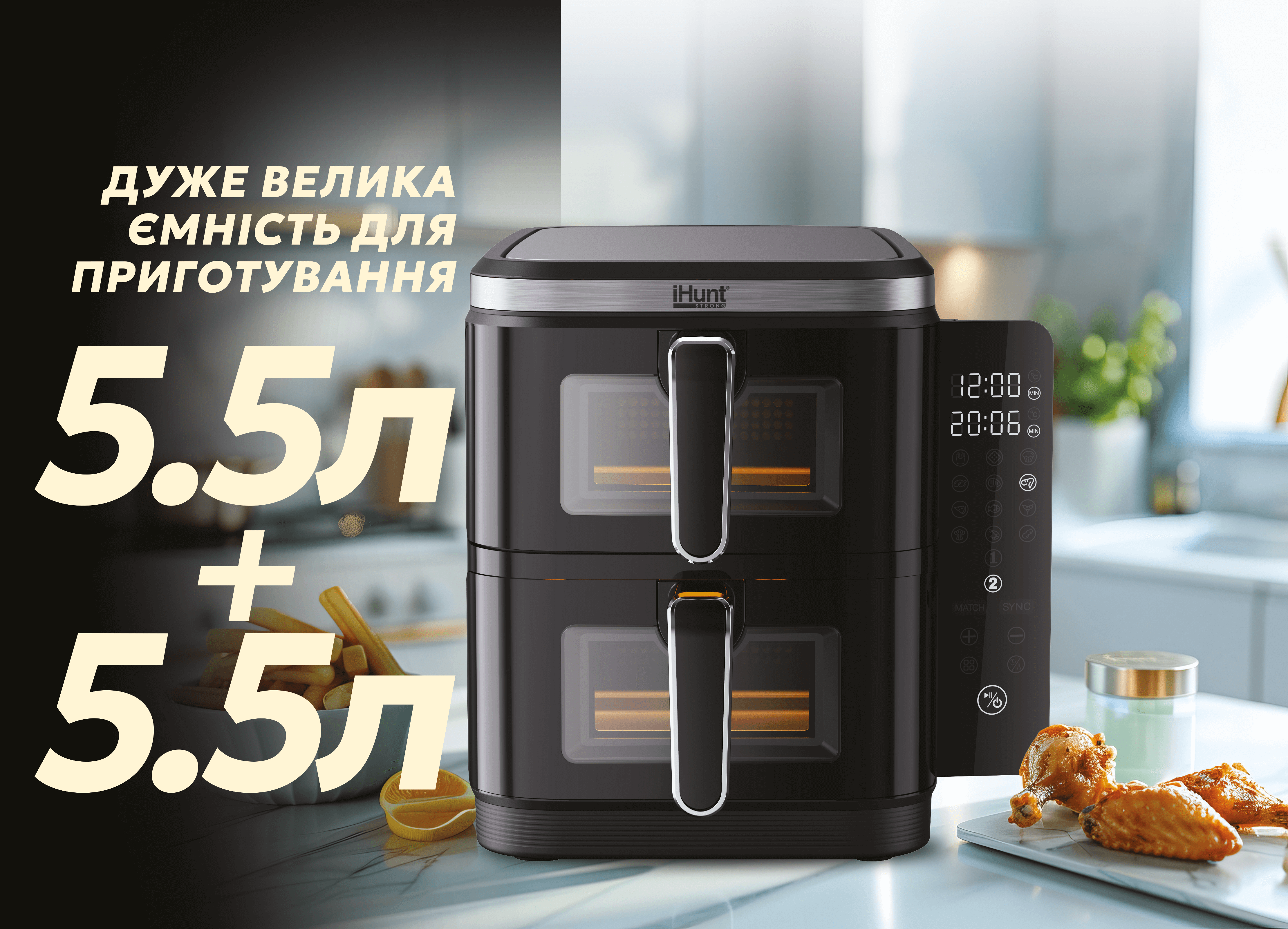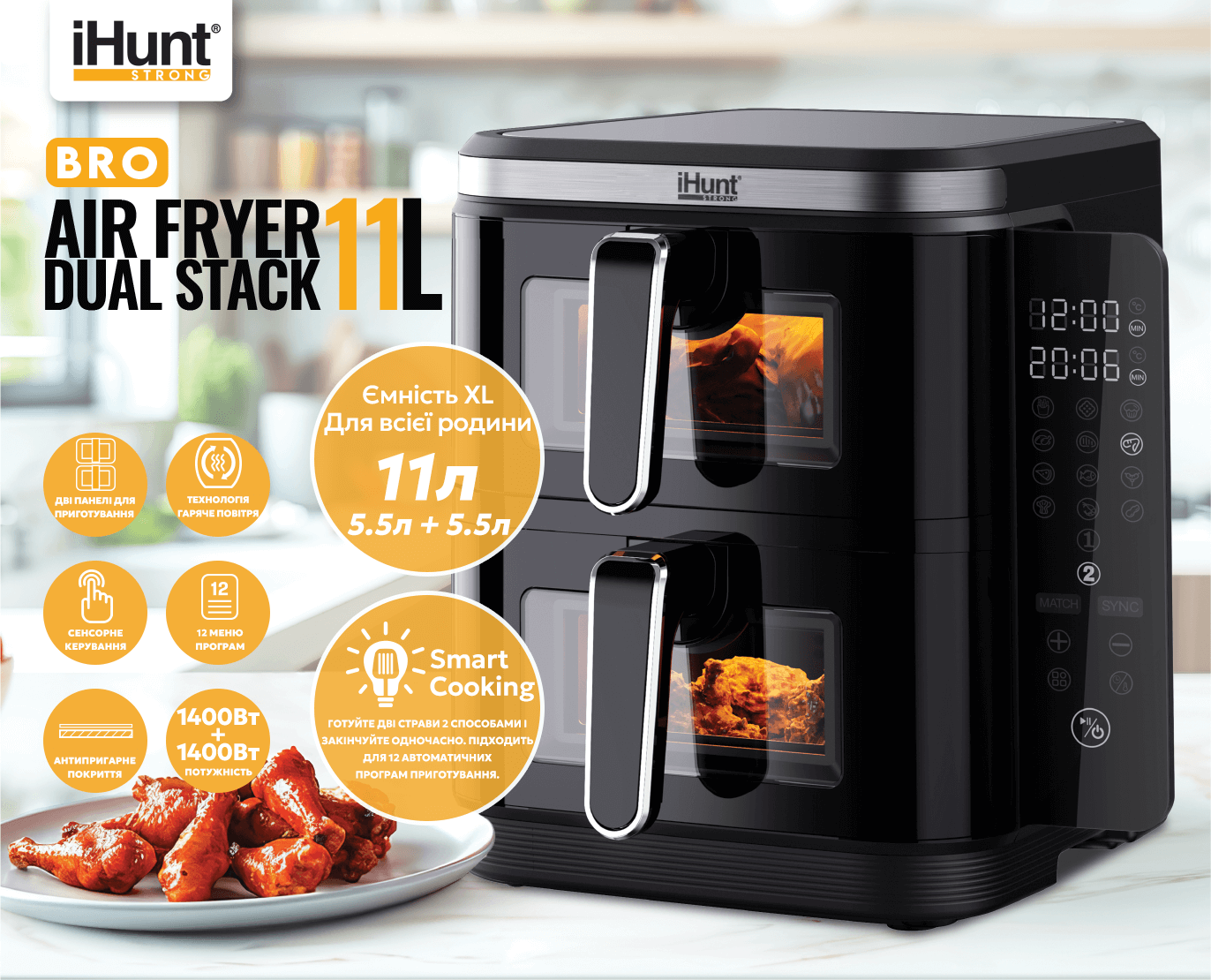 Перетворіть приготування їжі на швидкий, здоровий та смачний процес з iHunt Bro Air Fryer 11L Dual Stack!