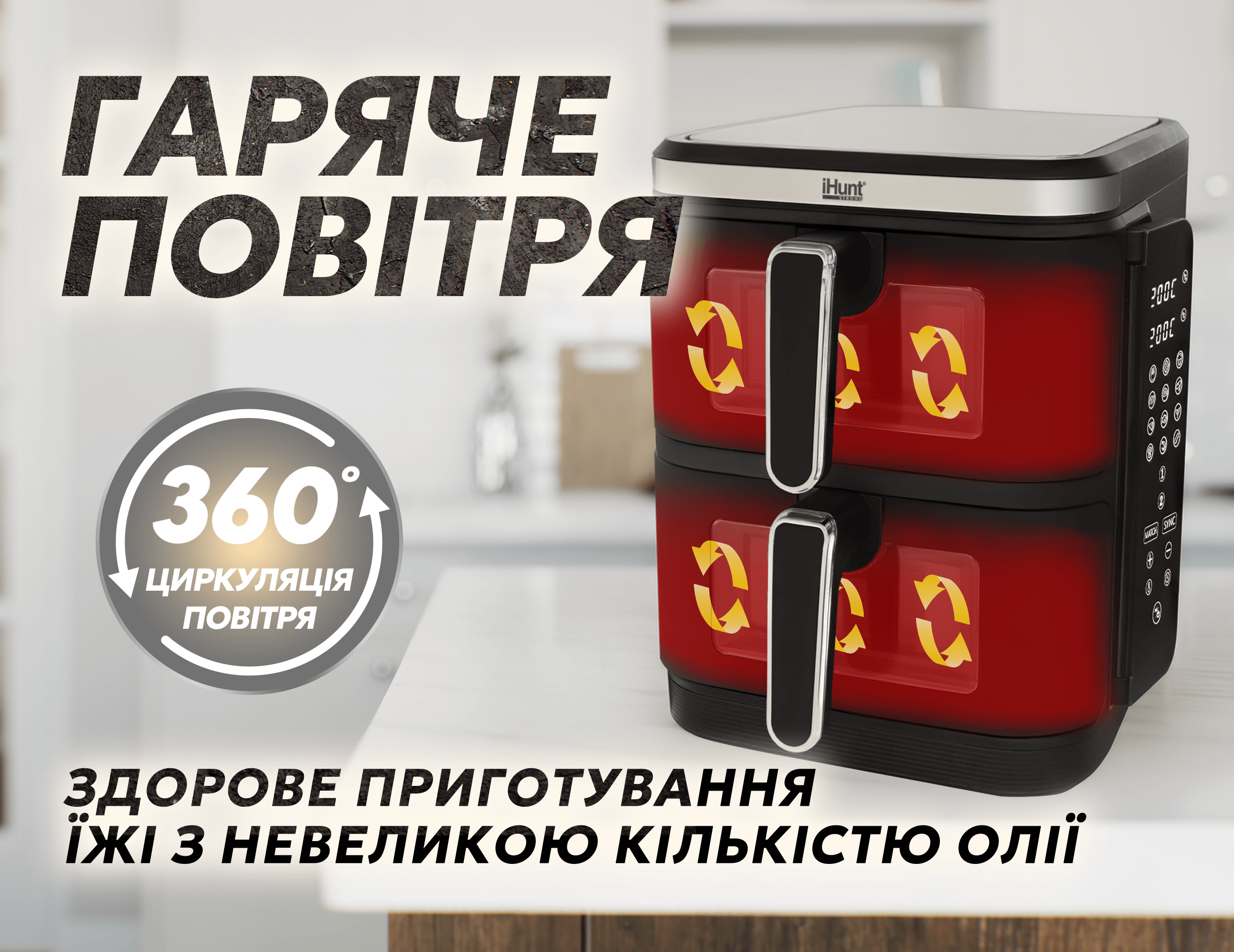 Технологія 360° гарячого повітря - рівномірне приготування з мінімальною кількістю олії для здорових та хрустких страв