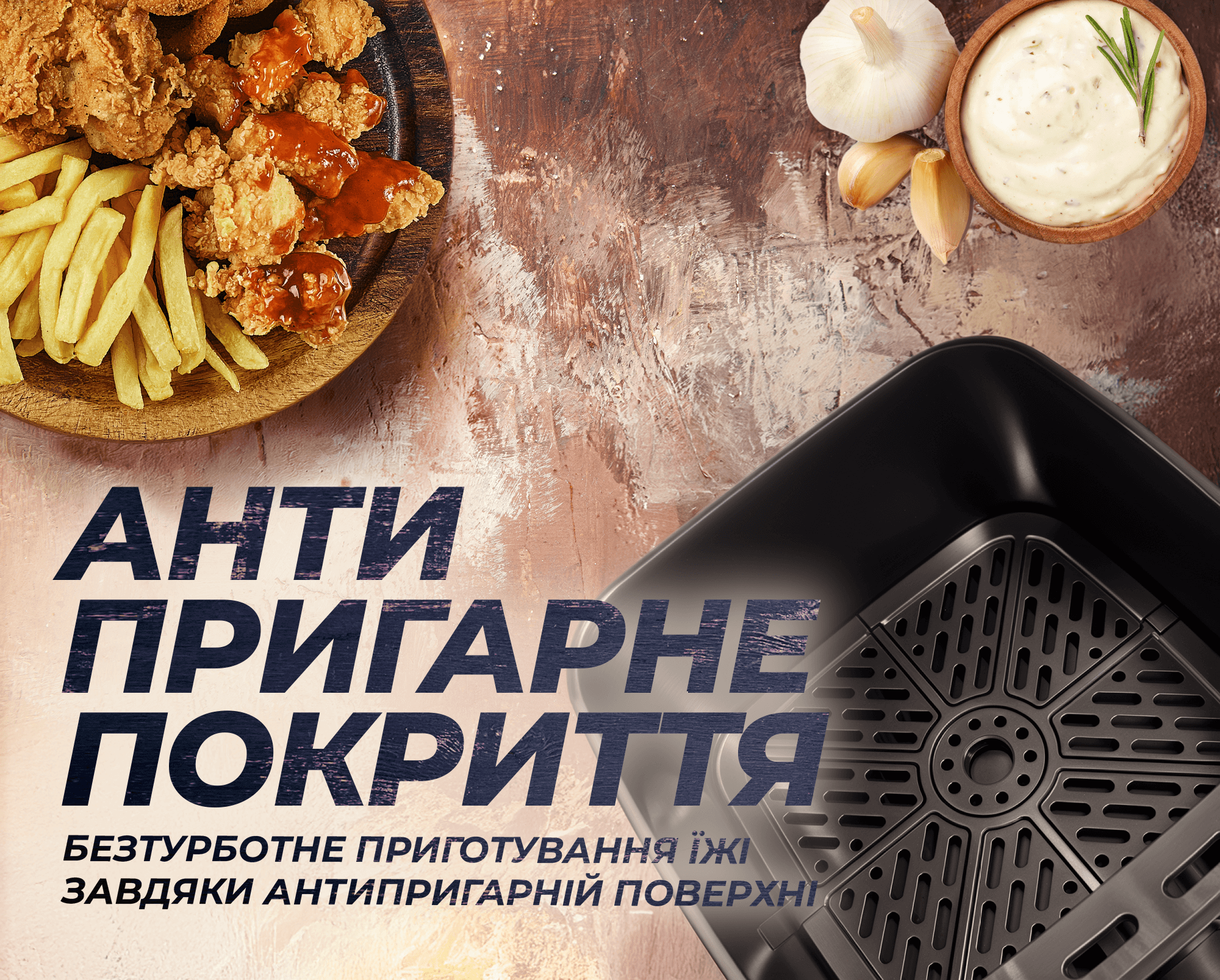 Менше олії — більше користі. Готуйте з на 85% менше жиру, зберігаючи насичений смак страв.