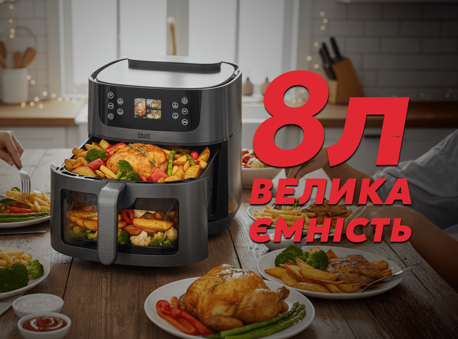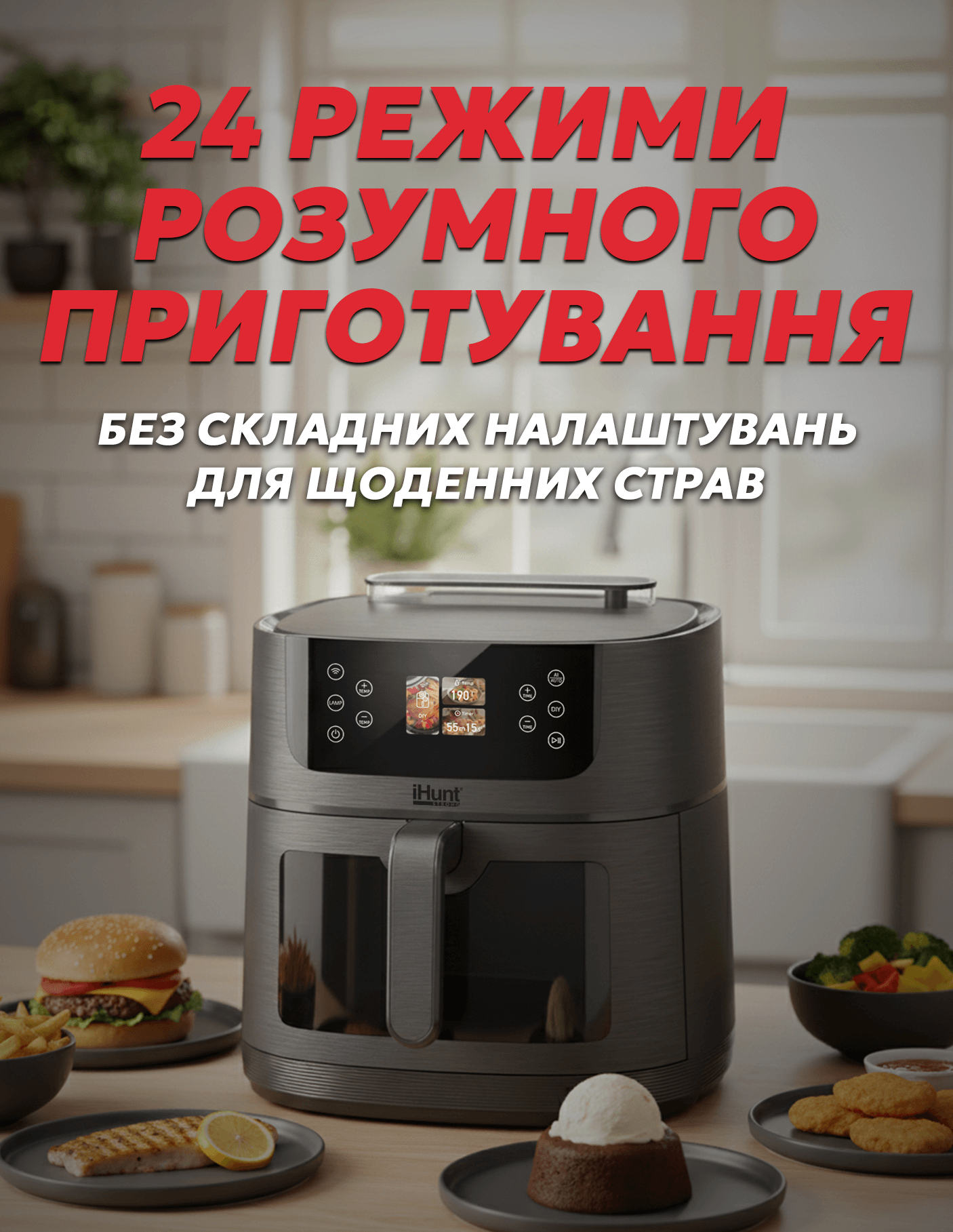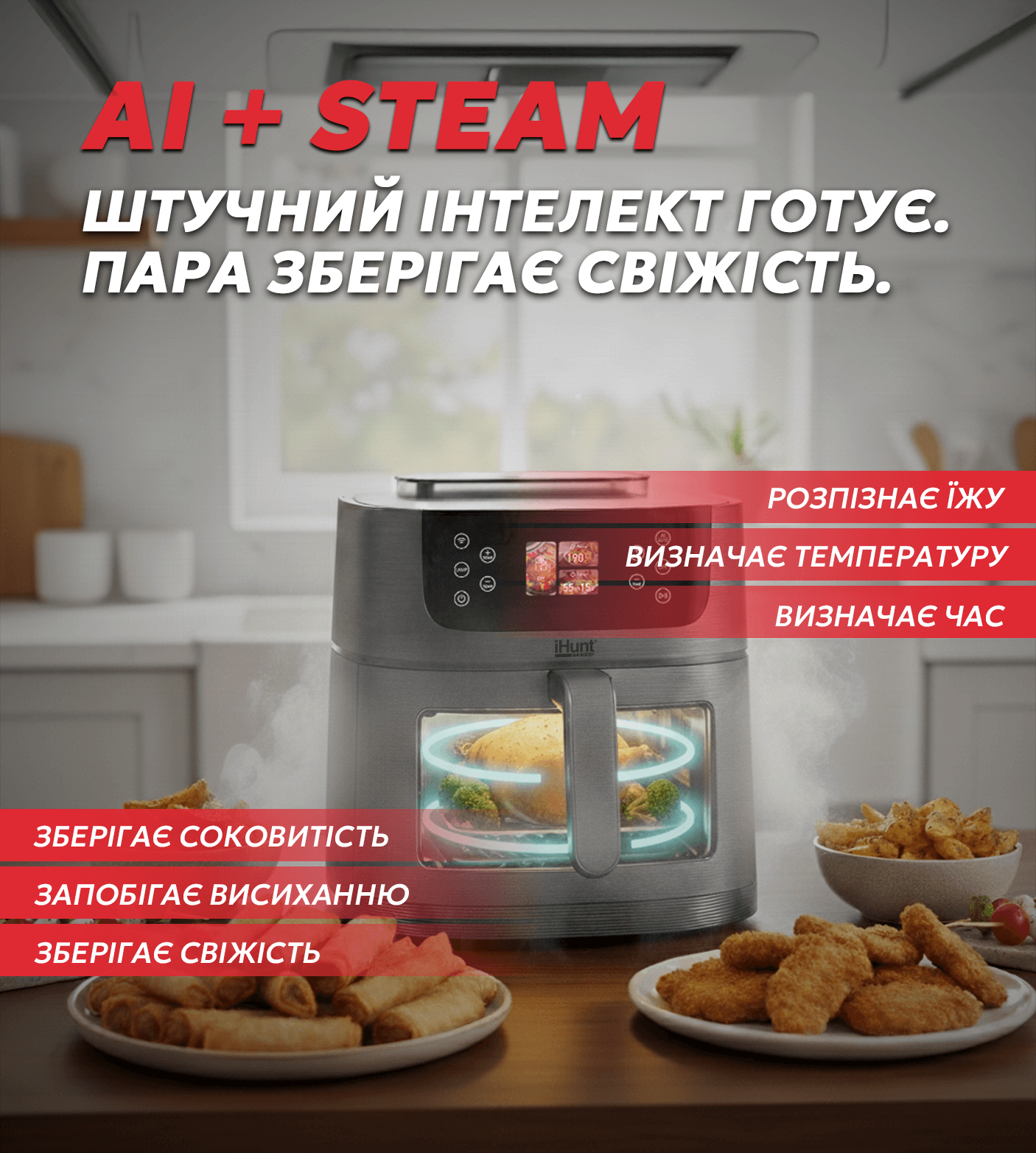 iHunt Bro Air Fryer AI Steam – Розумна фритюрниця з гарячим повітрям та парою для смачних і здорових страв