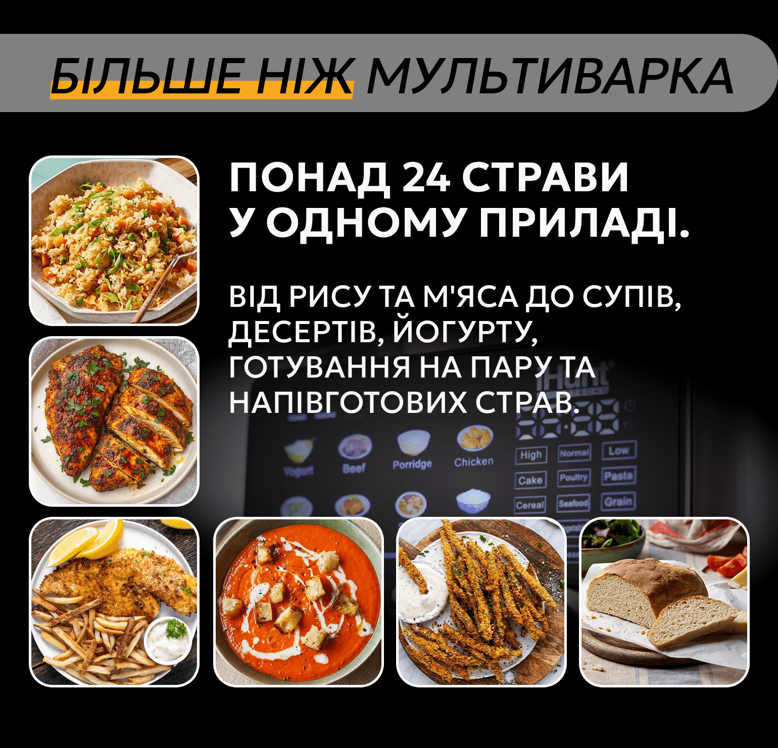 ✔ Цифрова панель управління з програмами: суп, м'ясо, рис, каша, десерти тощо