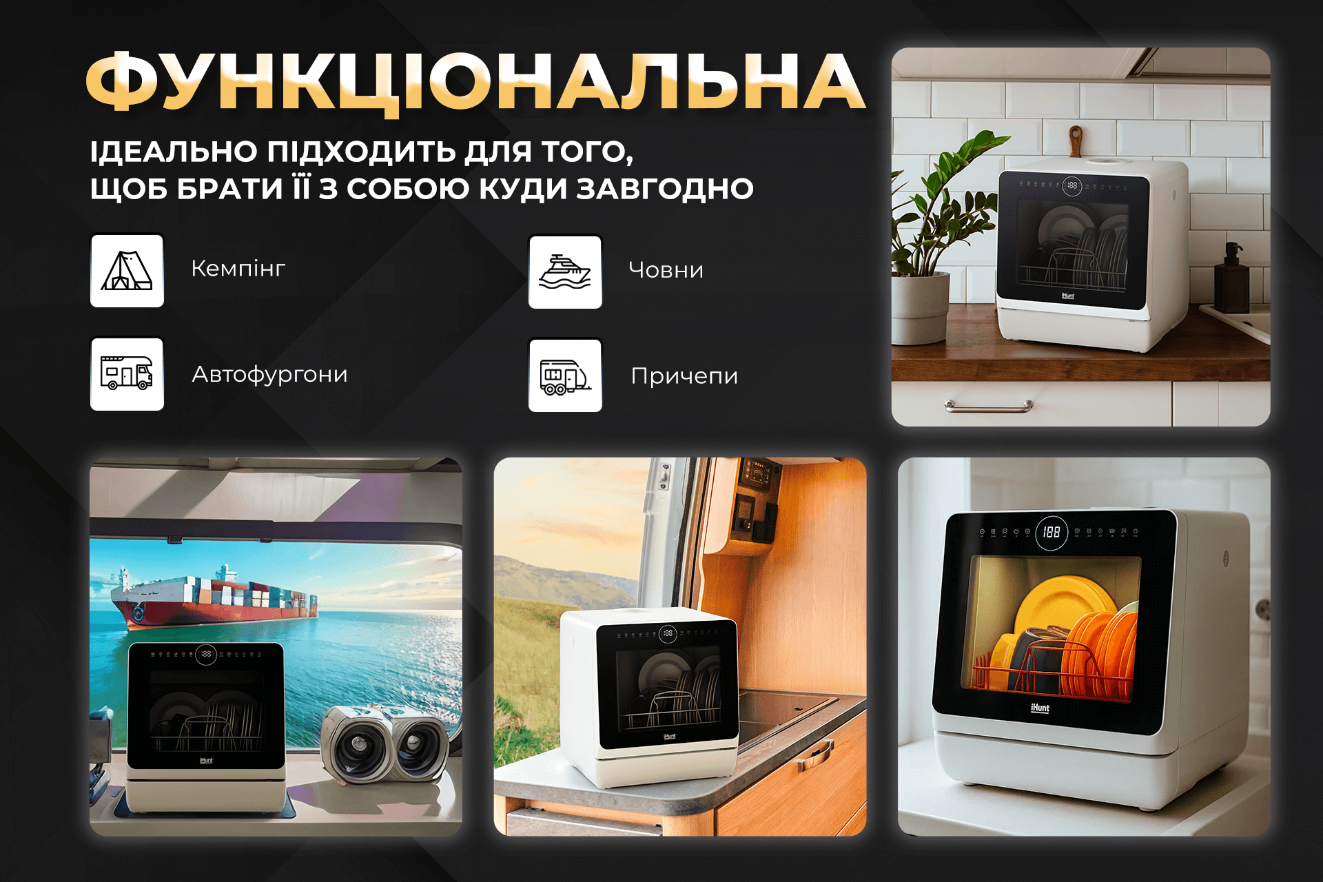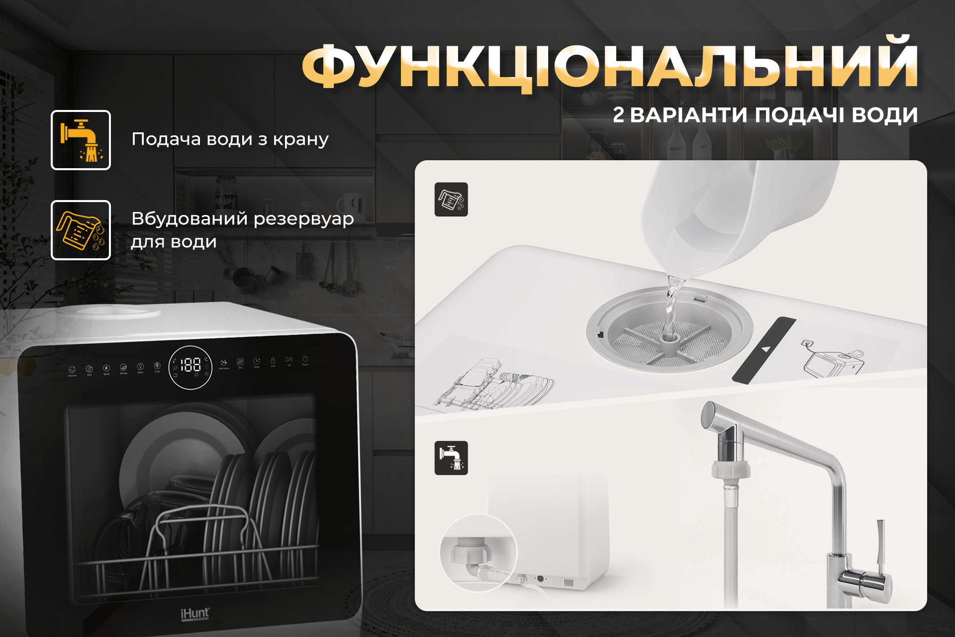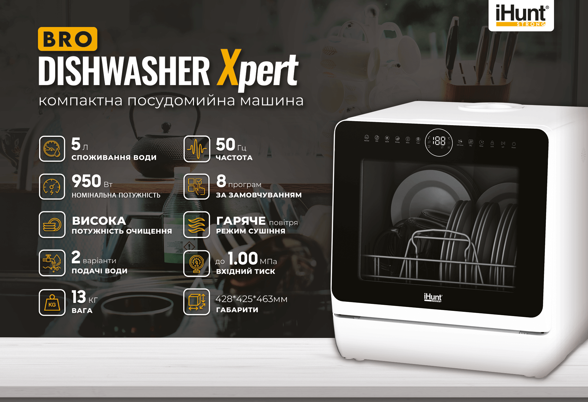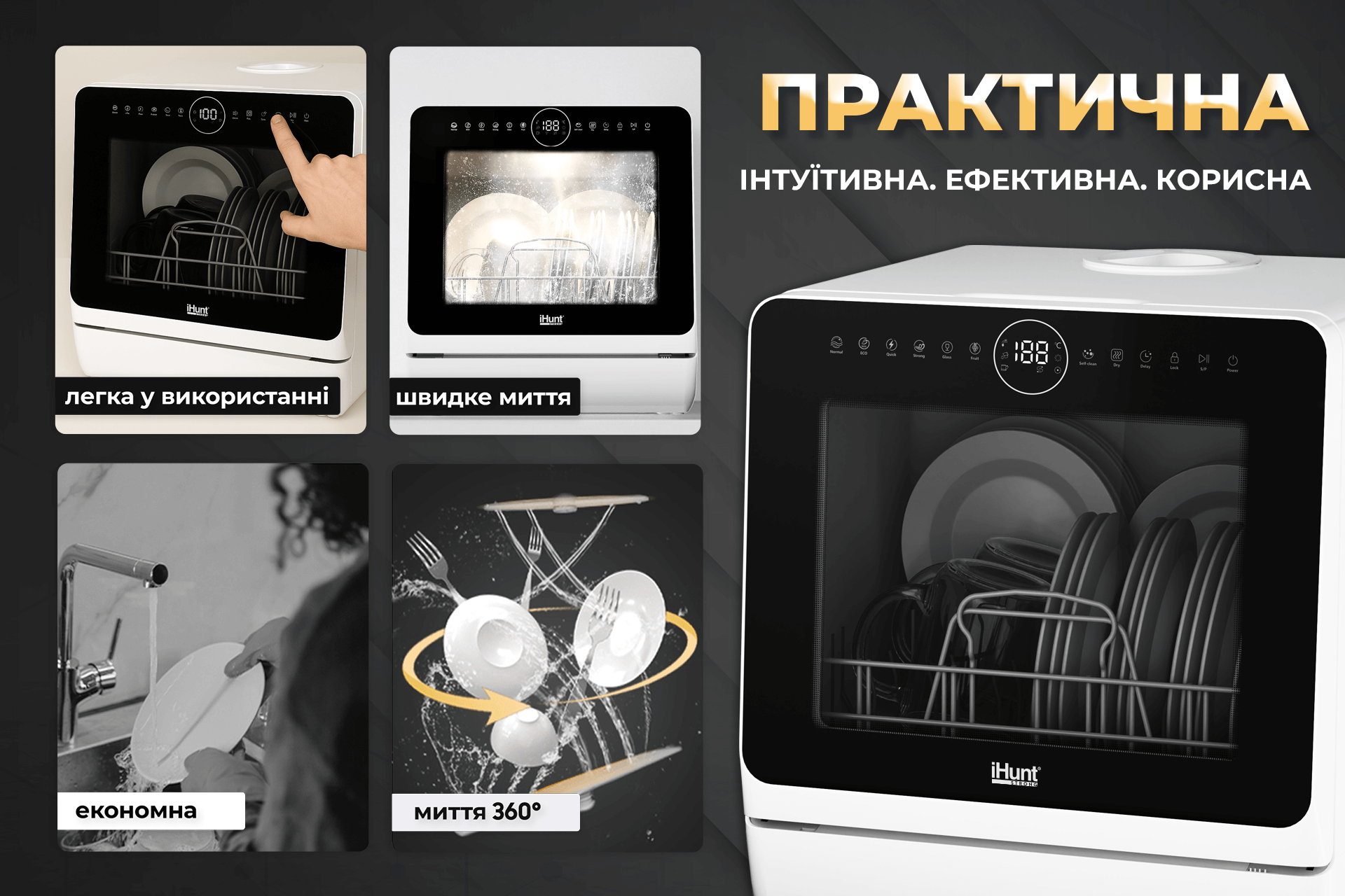 Шукала посудомийку для дачі — вибір пав на iHunt, бо не треба підключати до води. Все чудово миє, займає мало місця, виглядає сучасно. Зручно мати сушку — рідкість у такій ціні.