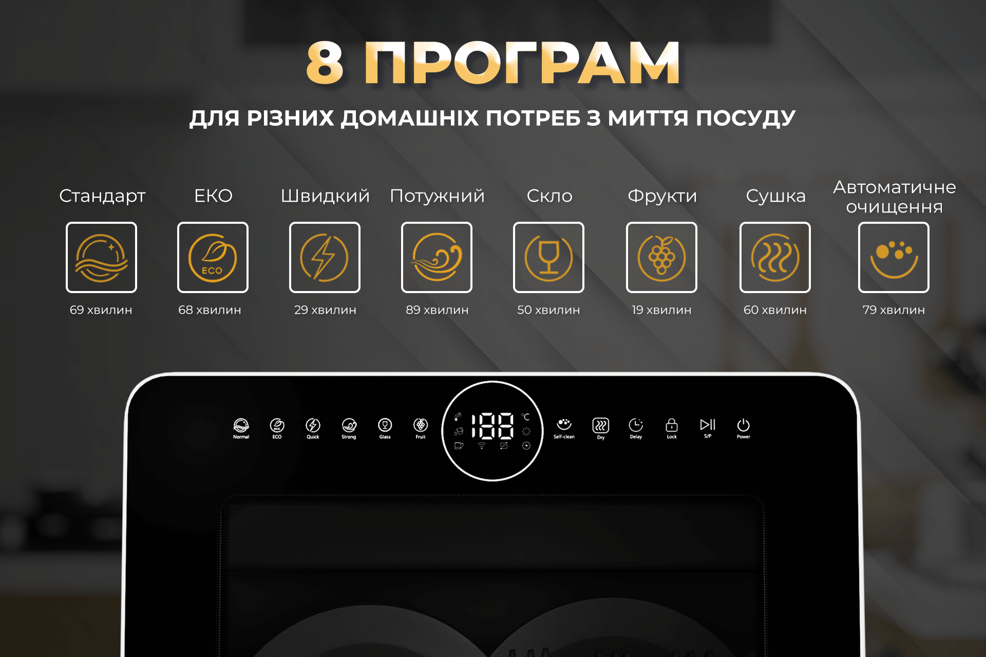 Користуюся вже два тижні – дуже зручно! Не треба мити вручну, і посуд завжди чистий. Підключив за 5 хвилин, залив воду – і все. Програми зрозумілі, керування інтуїтивне. Сушка працює добре, посуд не треба протирати. Тихо працює – майже не чутно.
