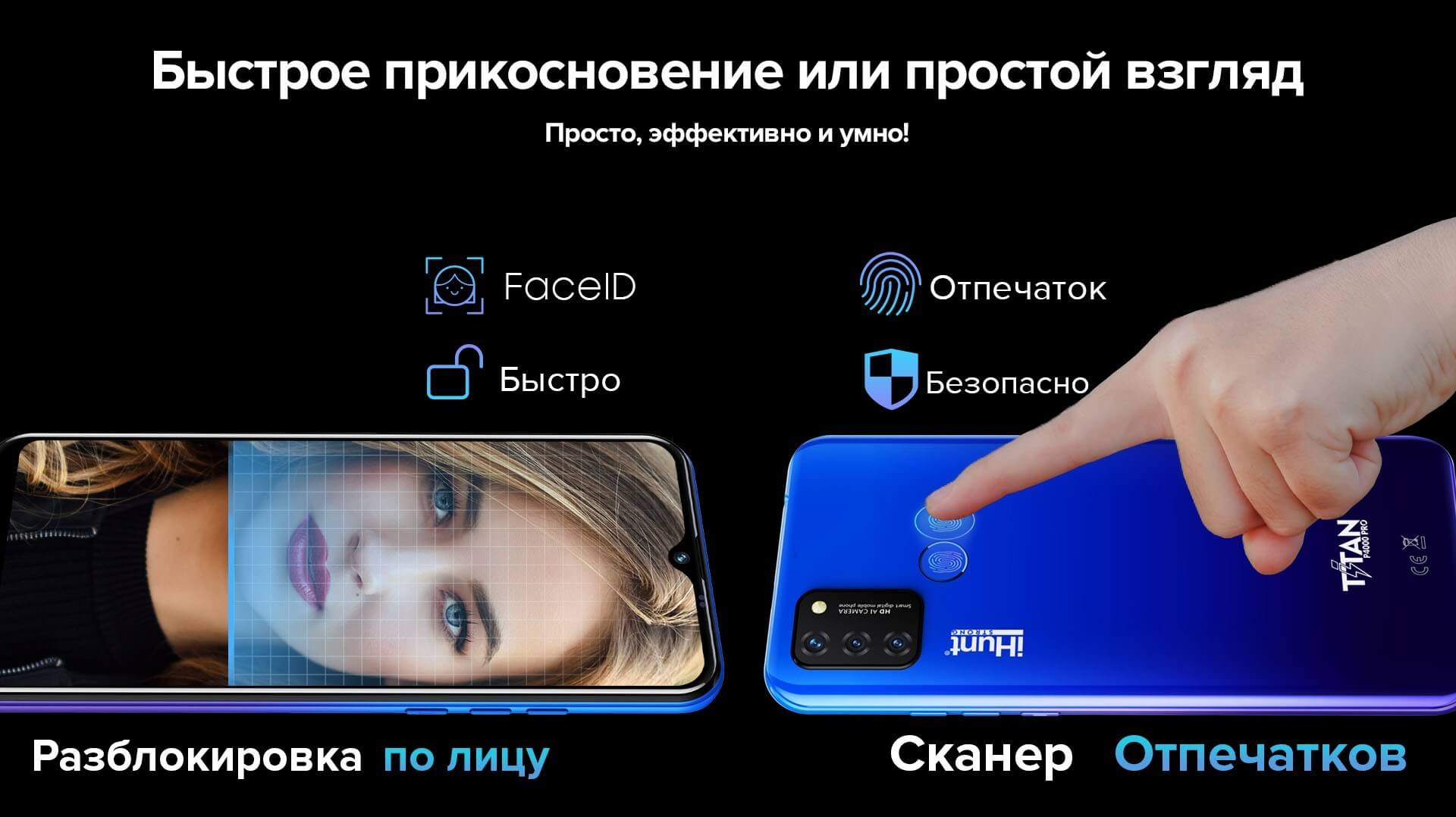 iHunt Titan P4000 Pro 2021 пропонує зручні методи розблокування, включаючи відбиток пальця та Face ID. Це забезпечує високий рівень безпеки та швидкий доступ до вашого смартфона, дозволяючи вам зручно розблокувати його за допомогою вашого відбитка пальця або обличчя.