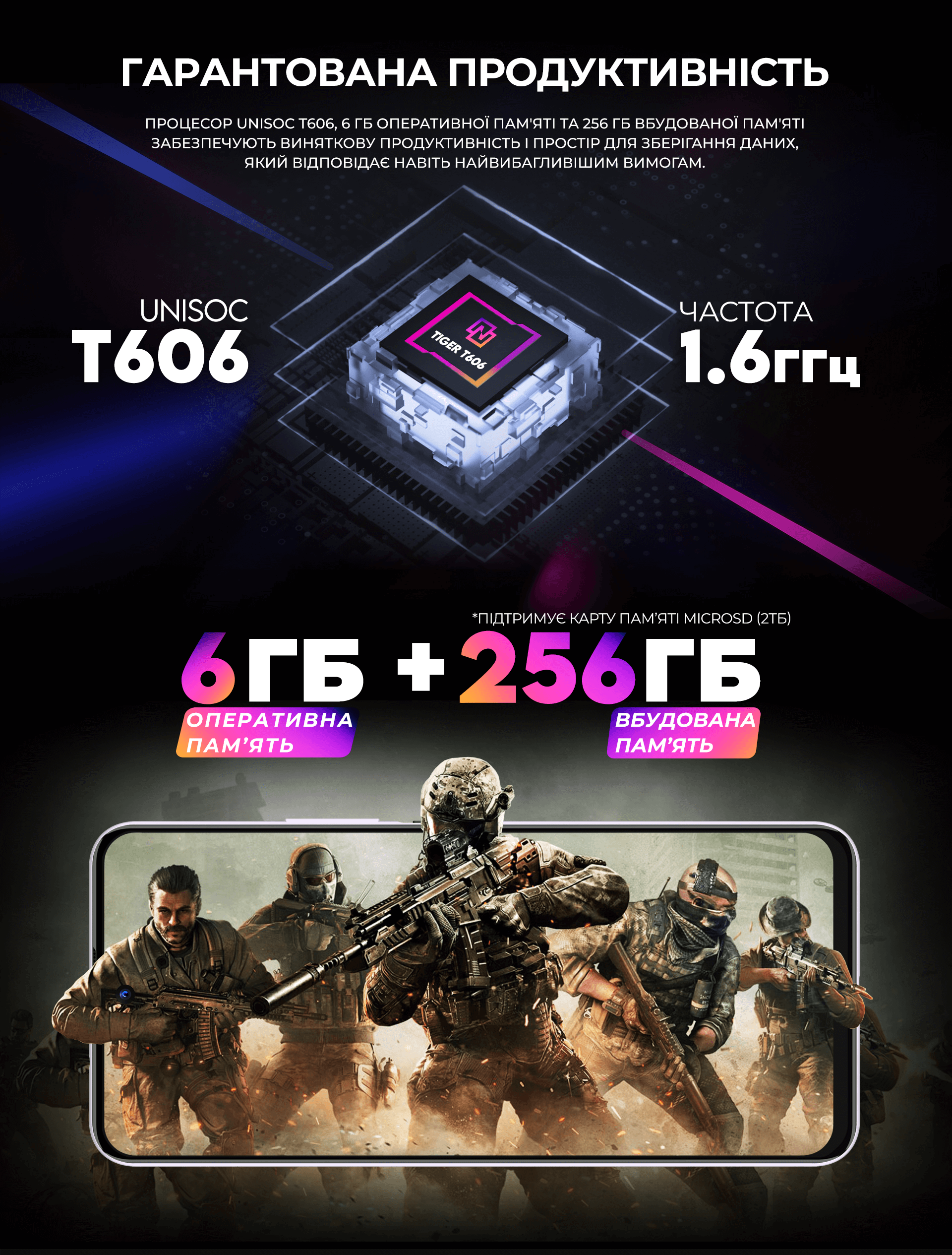 В смартфоне встроено 6 ГБ оперативной памяти на скорости Ultra, вместе с 8-ядерным процессором - современным и быстрым. Очень большое пространство для хранения - 256 ГБ внутренней памяти, возможность инсталлировать и загружать все, что пожелаете, сохранять все сделанные вами фотографии и все ваши любимые моменты, зафиксированные в ваших видео.